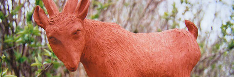 Der kleine Ziegenbock steht auf einer Scheune und schaut nach den Besuchern des Hofes. Der kleine Drachen sitzt immer noch vor meiner Werkstatt. Er begrüßt mich und die Besucher der Werkstatt und bewacht sie vor allem Bösen.