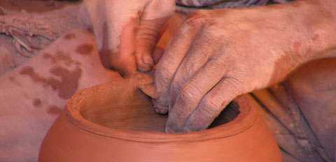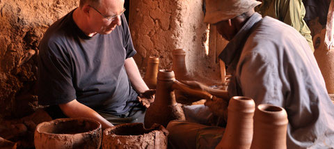 Beim Töpfer des Ortes können wir seine traditionelle Art des Töpferns erlernen. Damit tauchen wir in die jahrtausende alte Geschichte der Keramik ein.