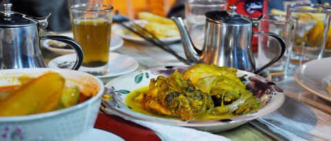 Das Essen wird von der Familie nach landestypischer Art zubereitet. Die Palmengärten, das Lehmdorf und das Zentrum des Dorfes laden zu Spaziergängen durch die Oase ein.